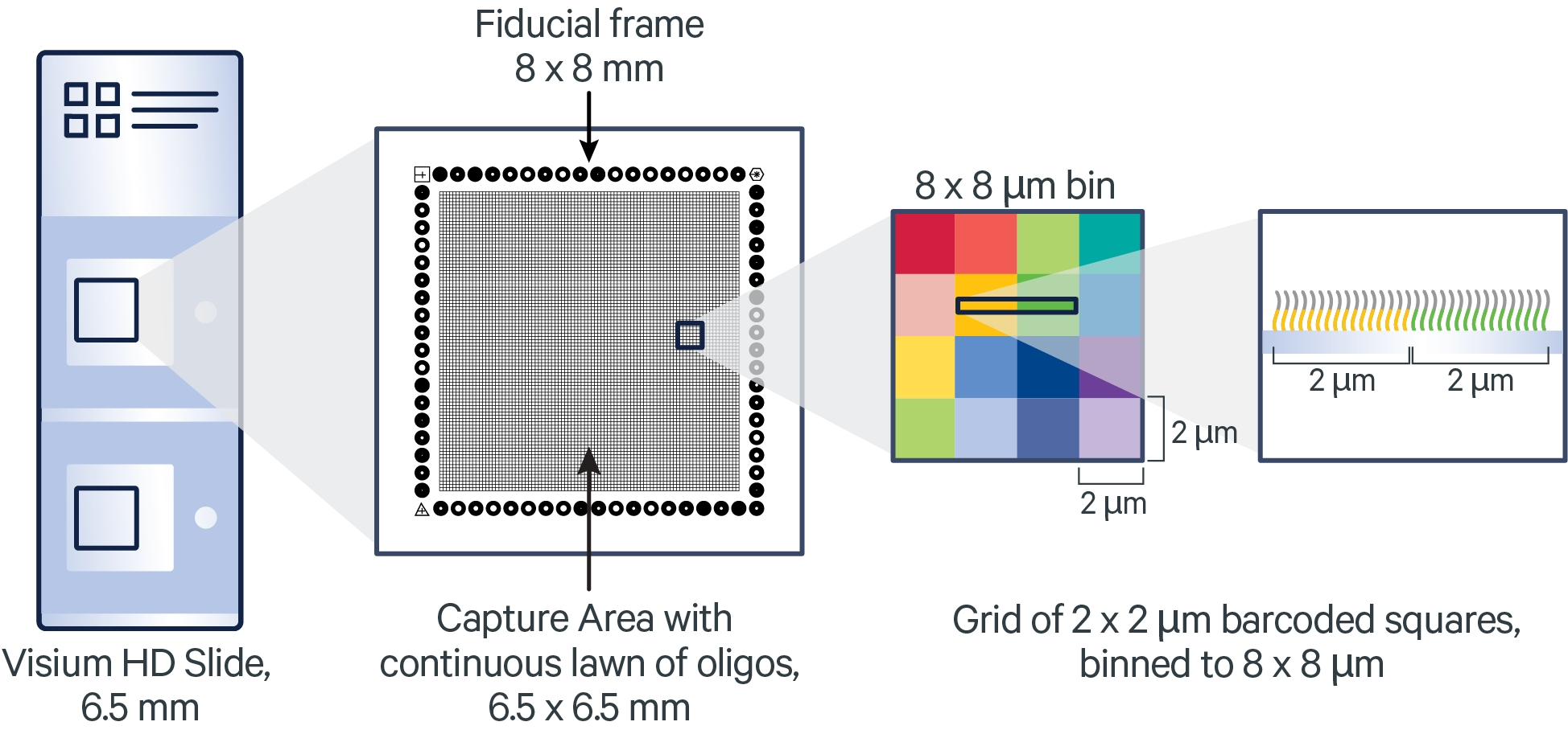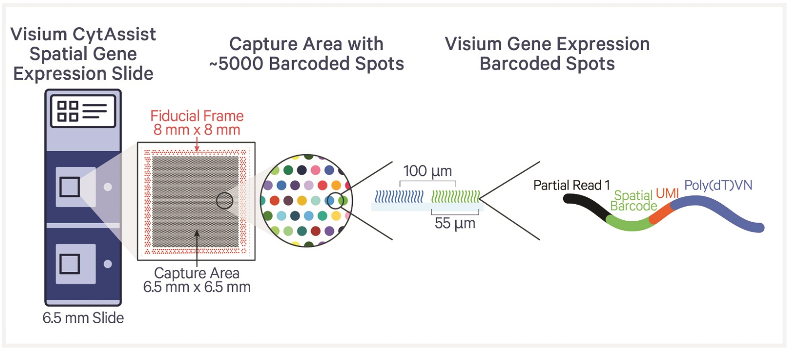 产品简介:Visium技术的高分辨率(HD)版本,将分辨率提升至近亚细胞级,能够以更高的精度解析细胞在空间上的基因表达模式。