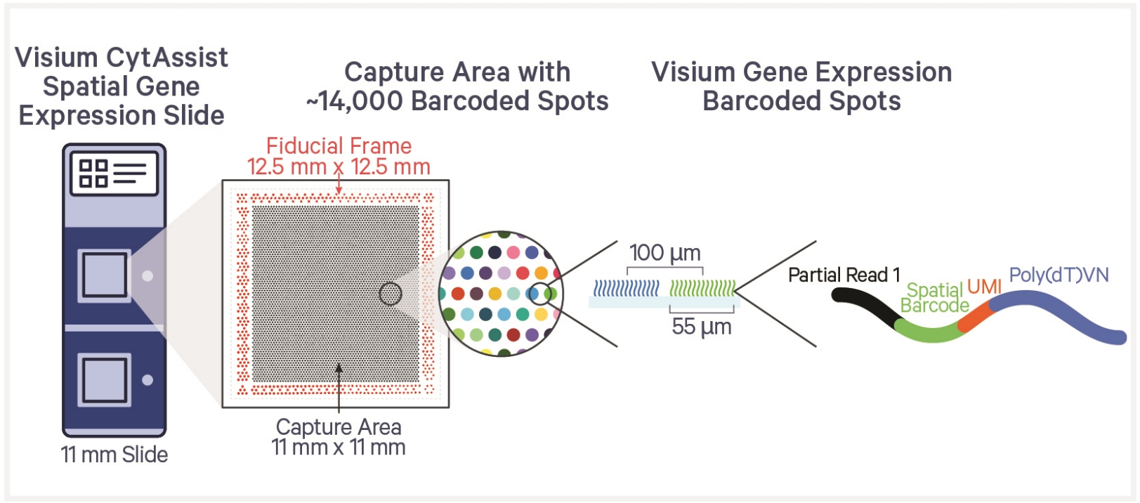 产品简介:Visium技术的高分辨率(HD)版本,将分辨率提升至近亚细胞级,能够以更高的精度解析细胞在空间上的基因表达模式。